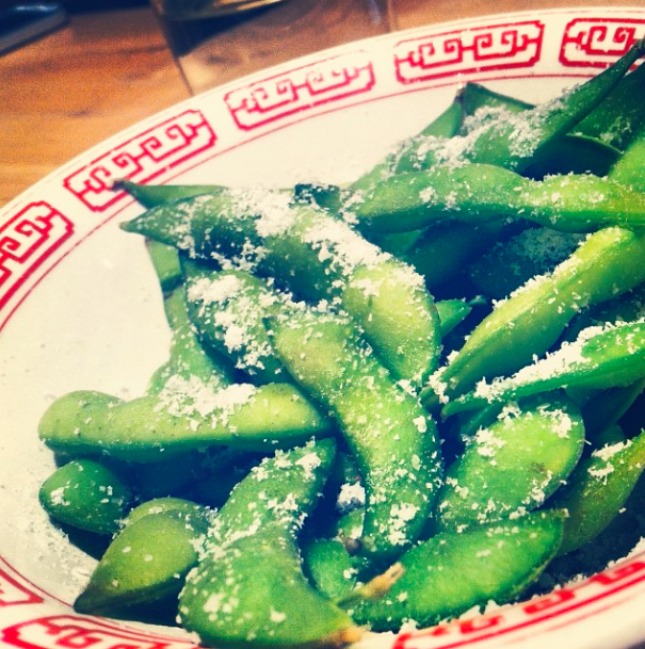 Getting the ramen party started, I headed to lunch with a few co-workers and we decided upon the Edamame and Ganso Spring Rolls. Perfectly steamed and salted, I could down a while plate of edamame when cooked right. The vegetarian spring rolls we’re lightly crispy with shiitake, burdock, carrot and karashi mustard-soy sauce dipping sauce.