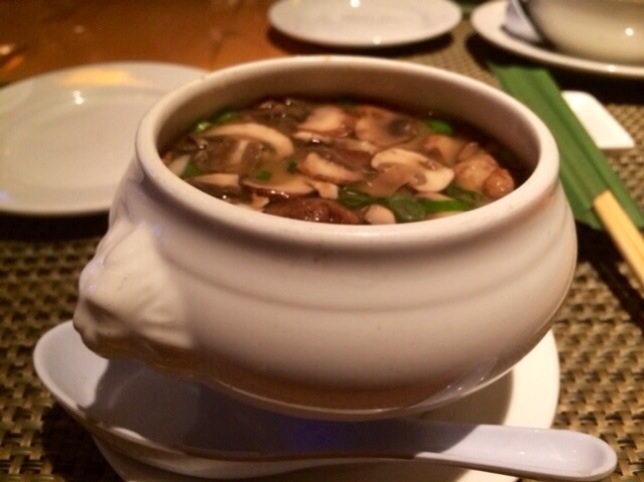 Looking to warm up a bit from the chilly outdoors, we started off the meal with some soup — obviously. I went with the Mushroom Miso Soup, which was served up in an impressive tiger pot with a generous amount of sliced mushrooms, scallions and tofu.