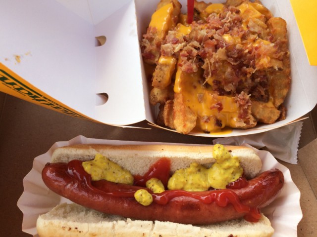 For my lunch I went with an original hot dog — obviously a classic, with mustard and ketchup. You really can’t go wrong. As a side, the cheese fries with bacon and old school lemonade were calling my name as the perfect additions to this “all-american” meal.