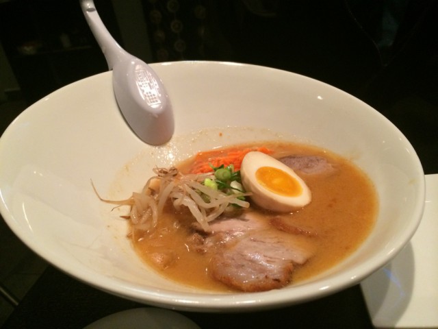 My boyfriend went with an incredible looking ramen dish as his main course — the Spicy Miso Ramen, which included tonkotsu (pork) and torigara (chicken) stock infused with a spicy miso mixture, topped with chashu pork, snap peas, bean sprouts, carrots, green onions and soft boiled egg.