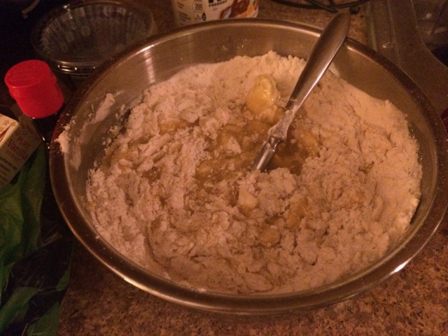 To start, pre-heat the oven to 325 and set aside two bowls (one for dry mix and one for the wet mix). This recipe will make a dozen small muffins OR 6 overflowing, huge muffins (like I made). Depends on how many people you’d like to share with.