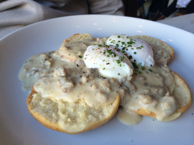 With some of the family in town for the weekend, we have a trio of options to share. The first choice was the biscuits and gravy, made with housemade pork sausage, potatoes and poached eggs on top. The gravy was so savory and perfect for a chilly December morning.